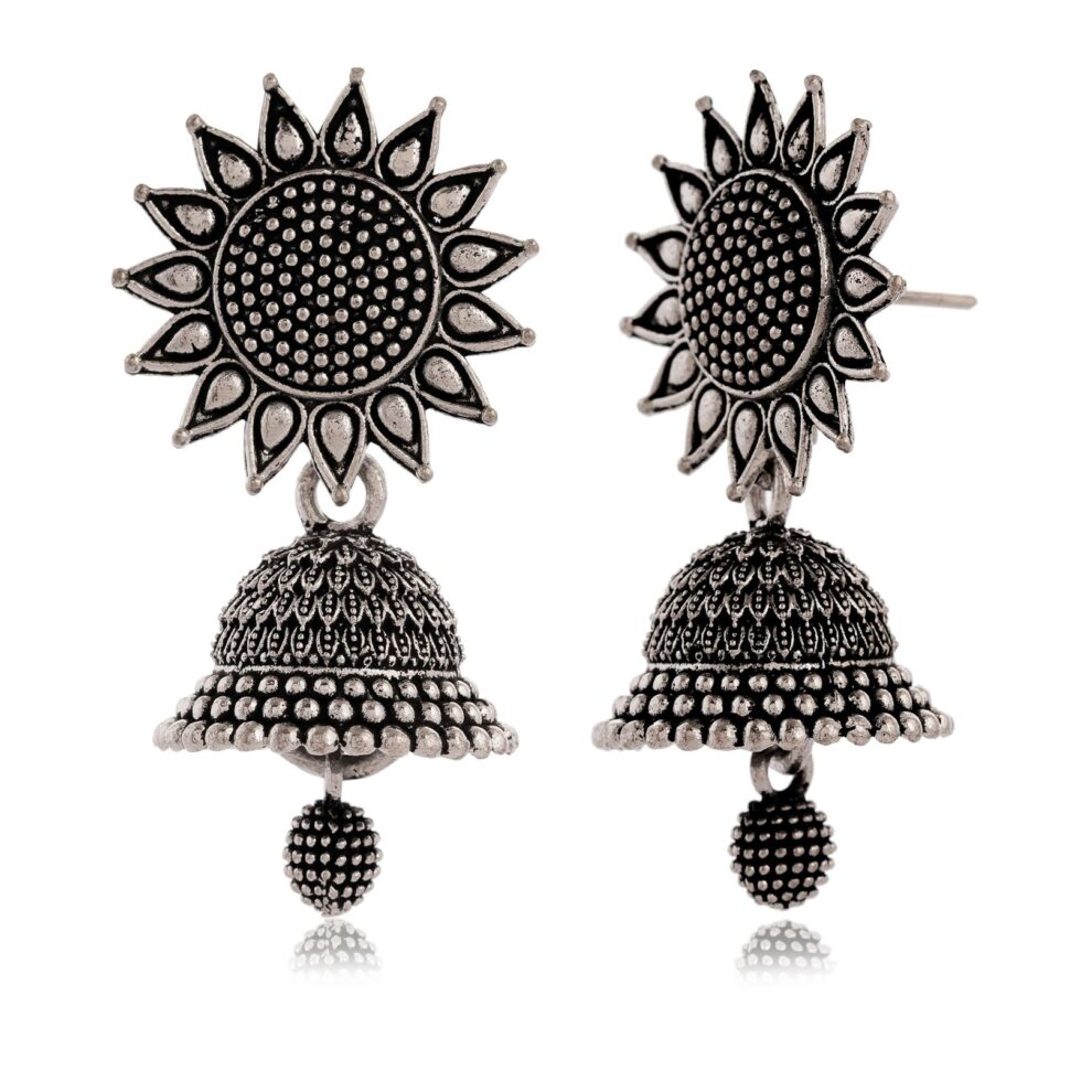 Earrings for Women Traditional Silver AZ838-OXidised Jhumka Set | German Silver Chand Baliyan & Jhumkas Earrings | Birthday & Anniversary Gift